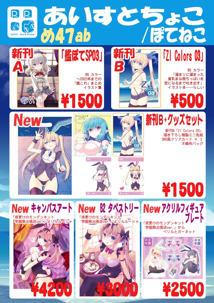 8/13(日) め47ab あいすとちょこ/ぽてねこ #C102お品書き