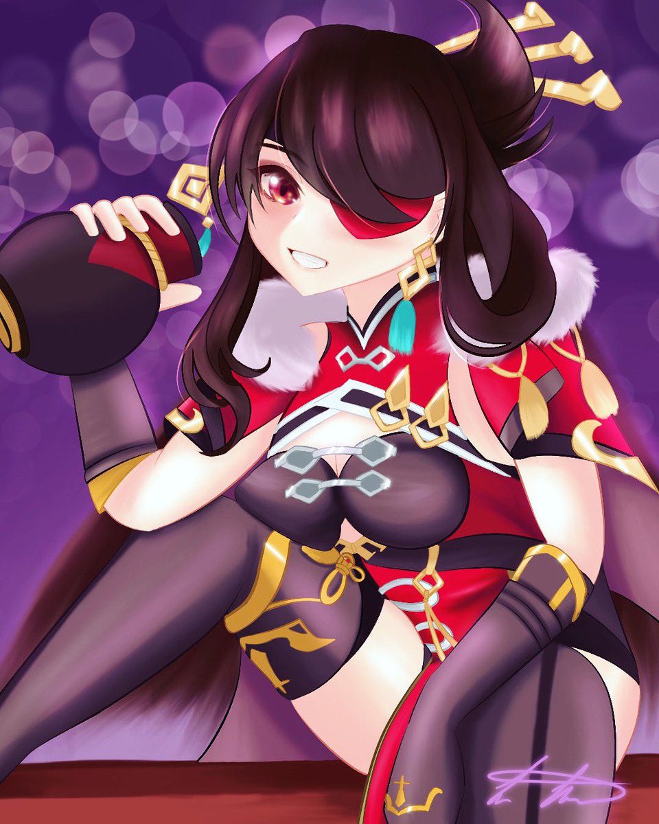 October 14, 2021 (late) Hu Tao #digitalart #hutao #hutaofanart #genshinimpact #genshinimpactfanart #artober2021