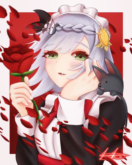 The part-time maid, @Maid_albi !!!He’s a very kind and supportive person in the VTubing community! Also loves his gummies xD Go check him out at twitch.tv/albireo_bayer ~ #albillust #ENVTuber #VTuber