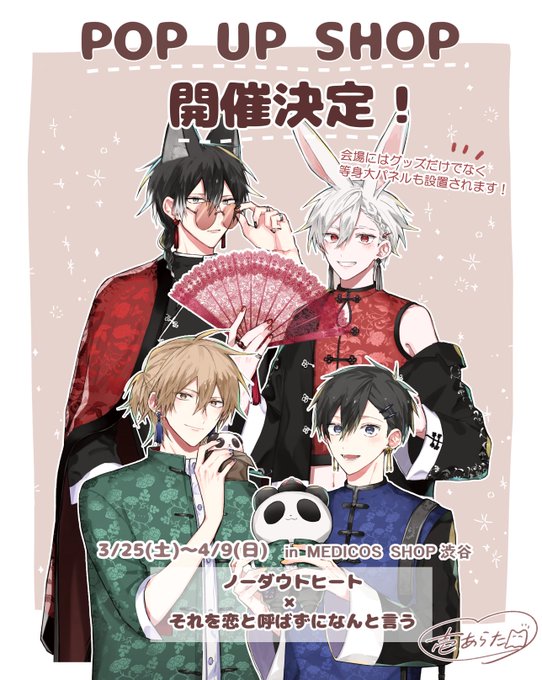 【🌸POP UP SHOP開催中🌸】 4月9日(日)までPOP UP SHOPが開催中です🐼 行ったよ~やグッズ購入のご報告ありがとうございます! 等身大パネルもあるので是非お写真撮ってやってください☺️ #商業BL #ノーダウトヒート #それを恋と呼ばずになんと言う twitter.com/medicos_et_02/…