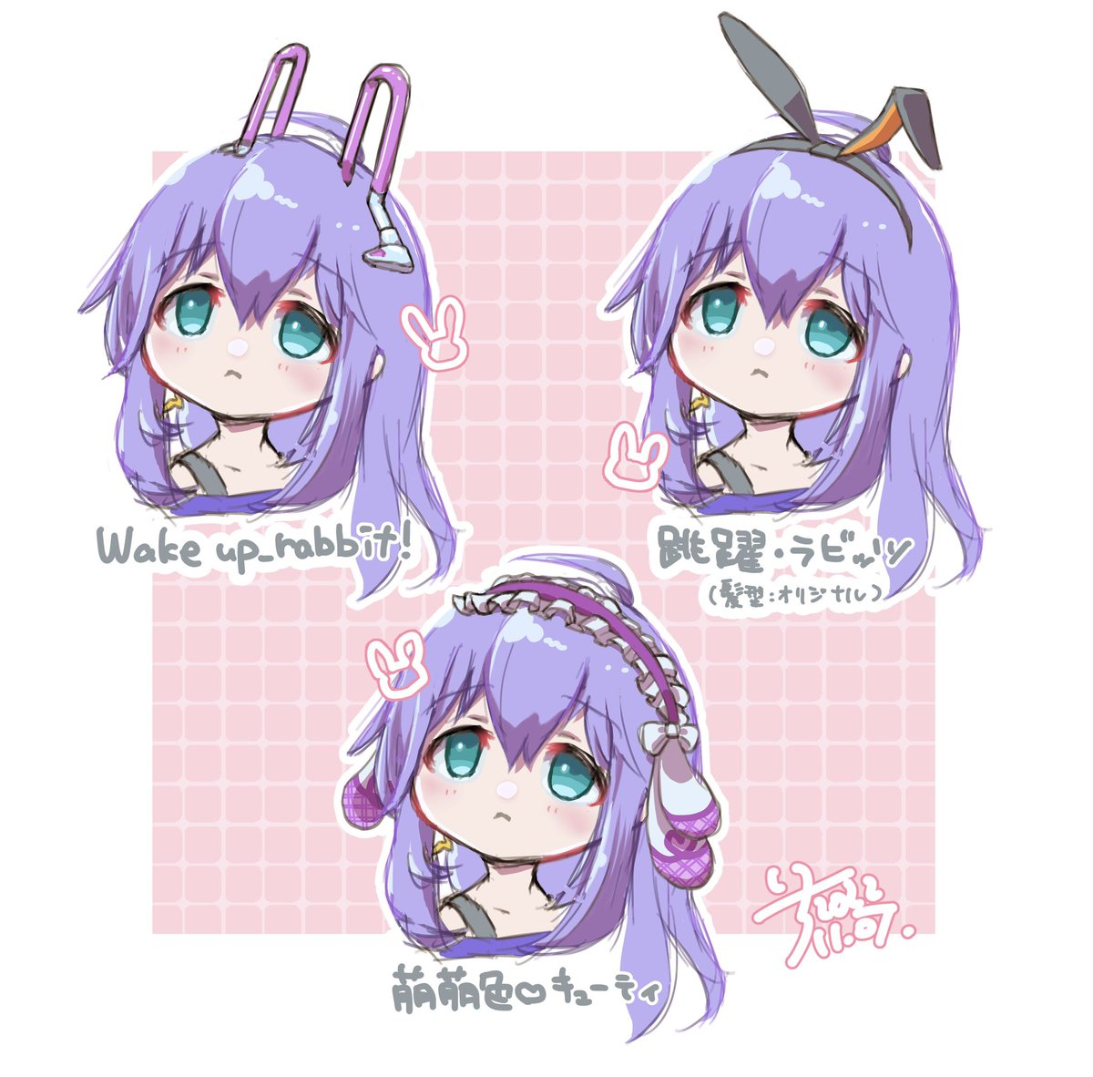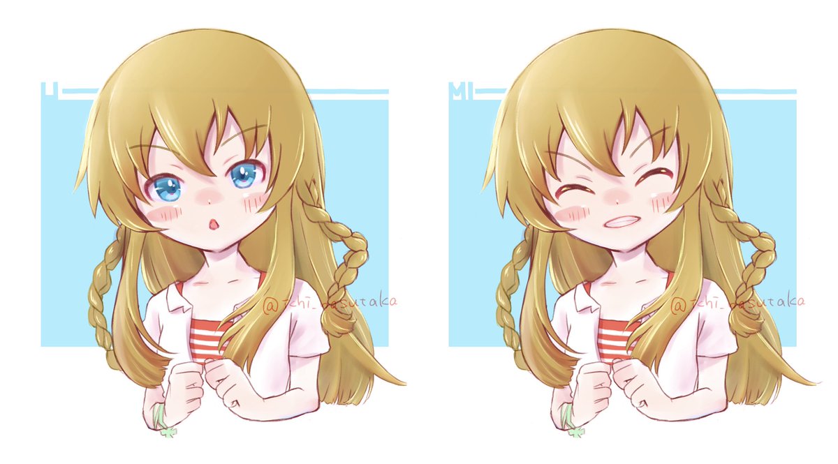 髪型、表情、小物周りの差分作りが思ったより大変だったけど楽しかった。 #今までで作画カロリーMAXの作品上げようぜ
