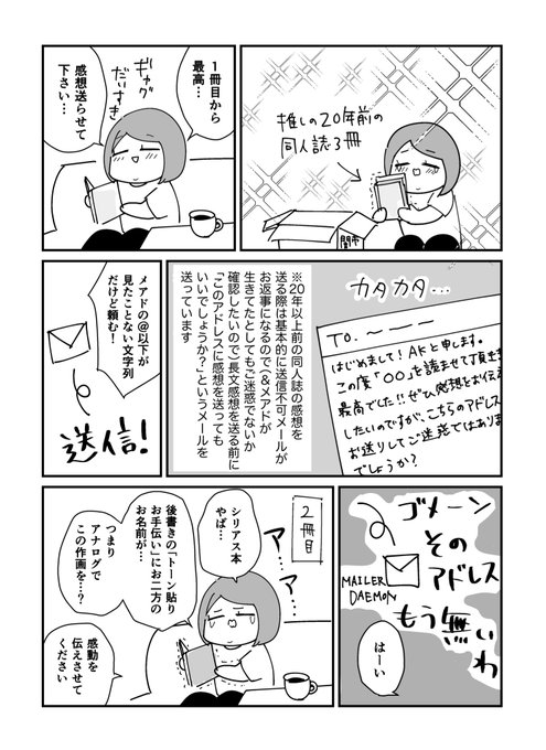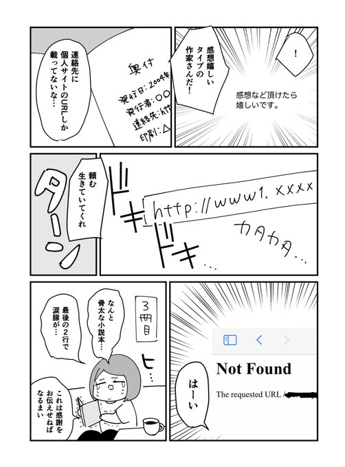 (2/2) 今回は事前にご友人が感想を送っていいか確認して下さった&20年近く前の本の感想を喜んでくださる作家さんでしたが、当然ながらそうでない場合もありますので感想活動はご自身の判断で行なって下さい🙇