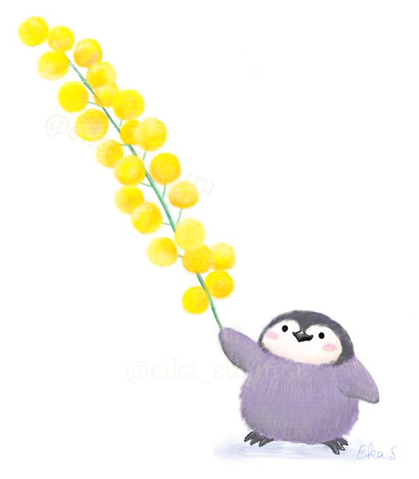 #ミモザ と ミニミニ赤ちゃん #ペンギン 🐧💛 初めて #デジタル絵 に挑戦しました✨ #giftforonetimeuse #ChildrensBooks #penguin #mimosa #Digital #illustraion #IllustratoroniPad