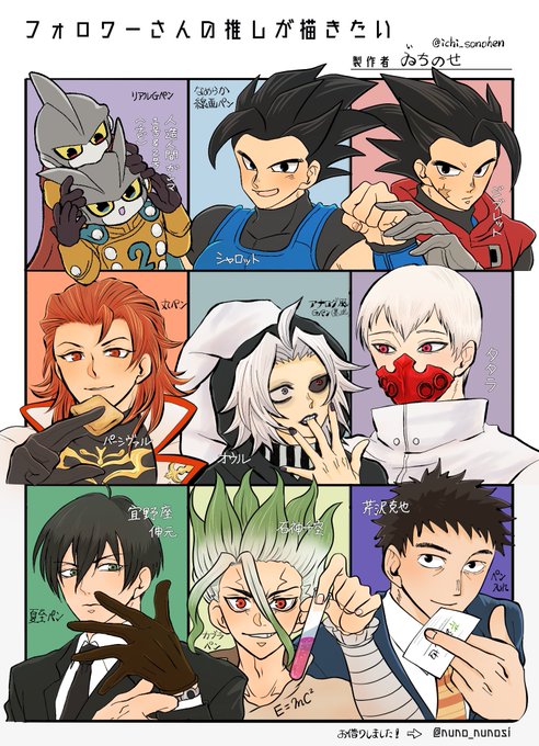 描かせて頂きました〜、全然違うとかあるかもしれませんが、描くの楽しかったです…!リクエストして下さった皆さん、本当にありがとうございました🥰ゐちのせアホだから途中から枠が分からなくなった民。 #フォロワーさんの推しが描きたい