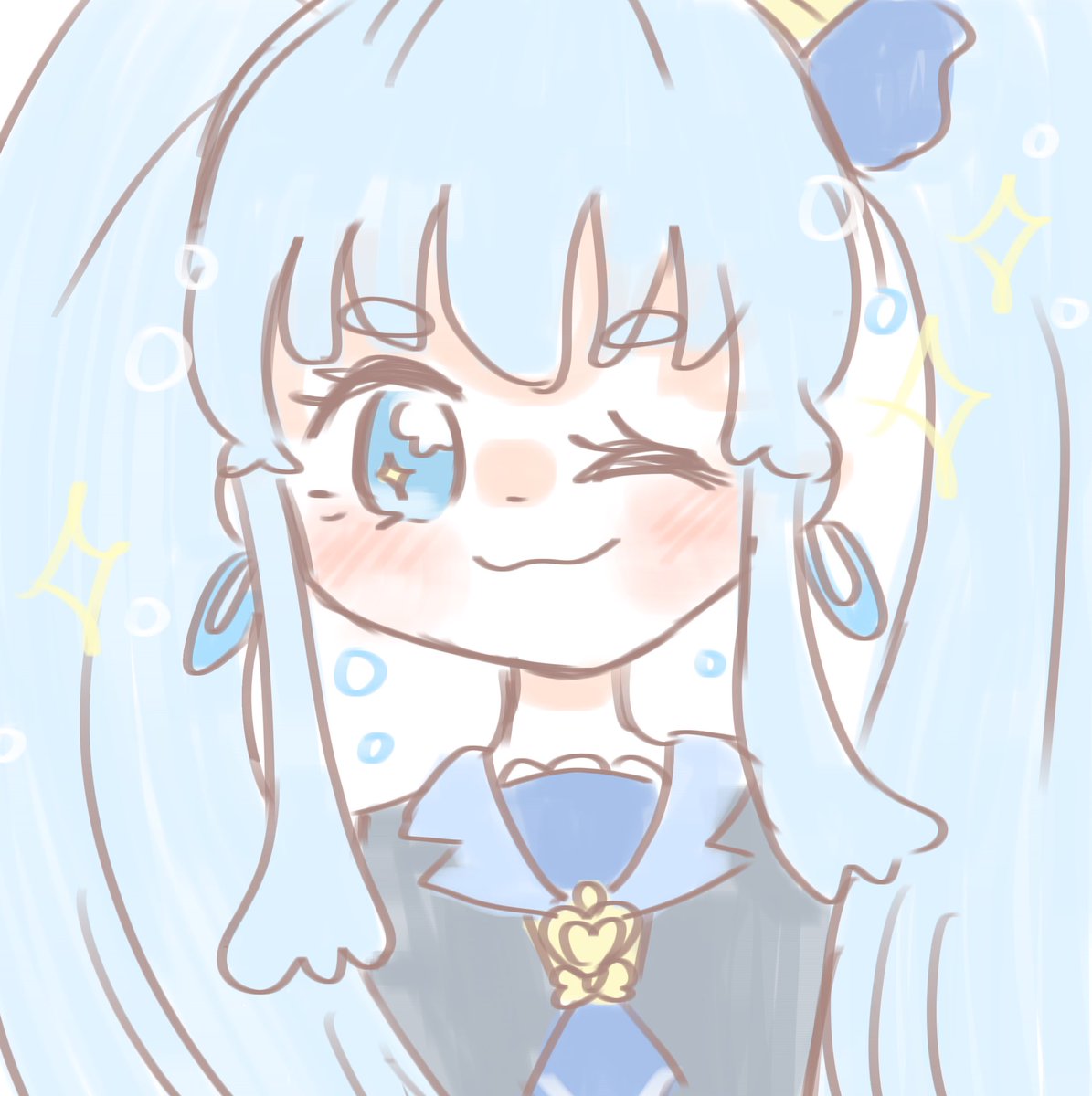 アローハプリキュア🌱・゚ 眠すぎて途中何度か寝かけてたので、荒い点ばかりと思います……😴😴 あまりにもあり得ない塗り方もしてたので、それだけは直しました、、😂笑笑 #プリキュア版深夜の真剣お絵描き60分一本勝負