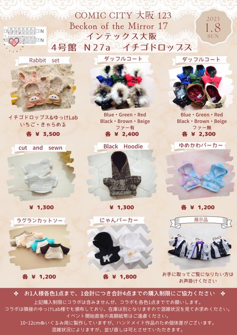 【BOOTH頒布のお知らせ】 2022/4/9(土) 袴セットをBOOTH頒布します🌟 10cm〜12cmぬいちゃんで着用確認済みです👘 頒布開始時間は前日に鍵をかけこのツイートのツリーにてお知らせします🔑 手間がかかるため今のところ再頒布は考えてませんので、気になる方はこの機会に是非❣️ ichigodrops.booth.pm/items/3773695
