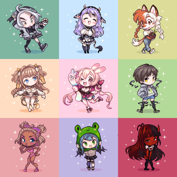 8TH BATCH happy sunday ^ 3 ^ 🫴❤️❤️❤️ AHEM js but middle gal is from one of my best friend roby's sleddog project.. :-p ❣️❣️ it's one of the cutest collabs ever if u haven't seen it yet (my child is Kikky 🐩) ilion.carrd.co