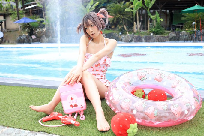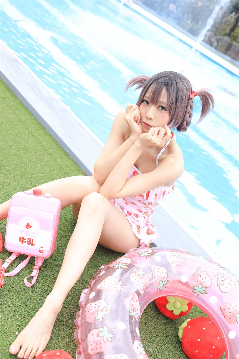 [コスプレ?]【🍓🍒の水着】 長いのは承知でたまにロリっ子に憧れた写真を撮るので多分これはロリっ子のコスプレ去年の写真 そしてよく付き合わされてるしもさんいつもありがとうね 📷しもっち@shimottu