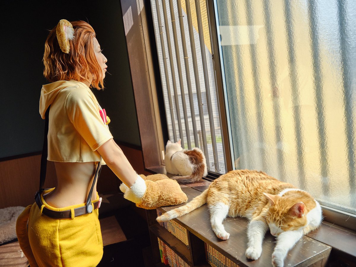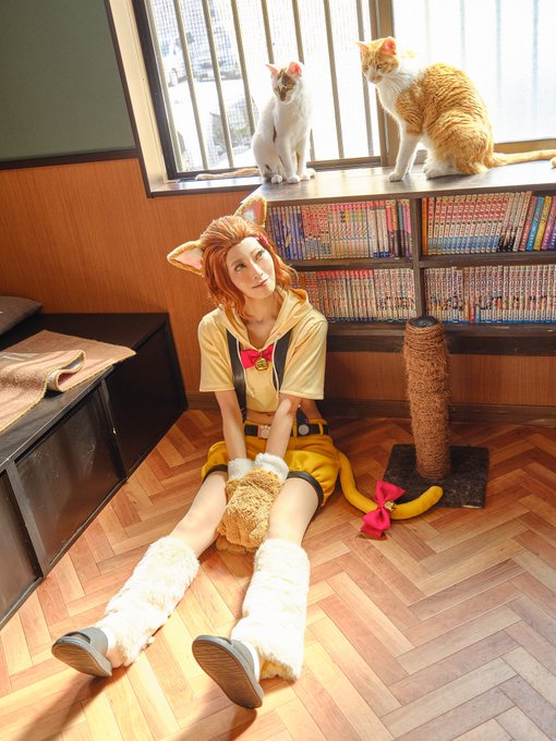22 46 猫の日~🐈🐾 [コスプレ]【アイドルマスターシンデレラガールズ/陽気なタビーキャット+】 📷:南極夏彦@nnankyoku 🏡:壱里山Studio @ichiriyama_St スタジオのお姉さんのもとで猫さんとご一緒してます🐈 隣の通常カフェのワッフル美味しいですよ😋💓✨ 23/02/22 21:50