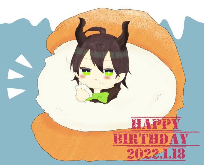 112 561 #マレウス・ドラコニア誕生祭2022 #ツイステファンアート ツノ太郎誕生日おめでとう~!!🥳🎉 22/01/18 00:00