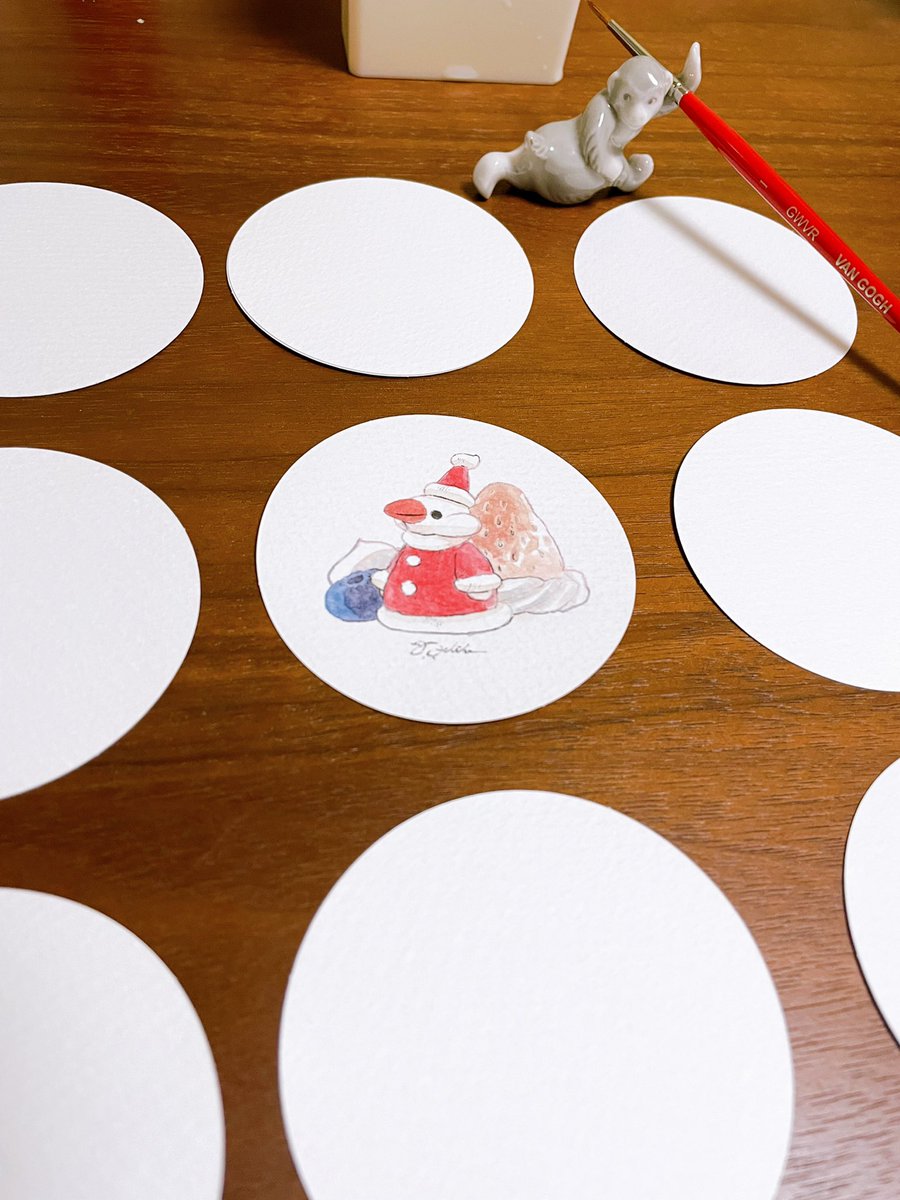 1 20 こちらデザフェス用のミニまる原画です。 1枚目は『シュガー文鳥ホワイト』🎄 #デザフェス56 #文鳥 #水彩画 22/10/09 23:44