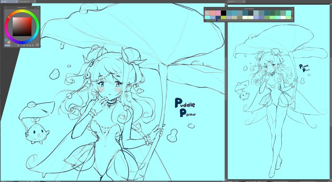 Wanted to design a Pomu fairy outfit with a BEEG LEAF!! 🍃💧 It's called, "PP: Puddle Pomu" #PomuPaint 🫧 Maybe I will finish the doodle...? 🫣