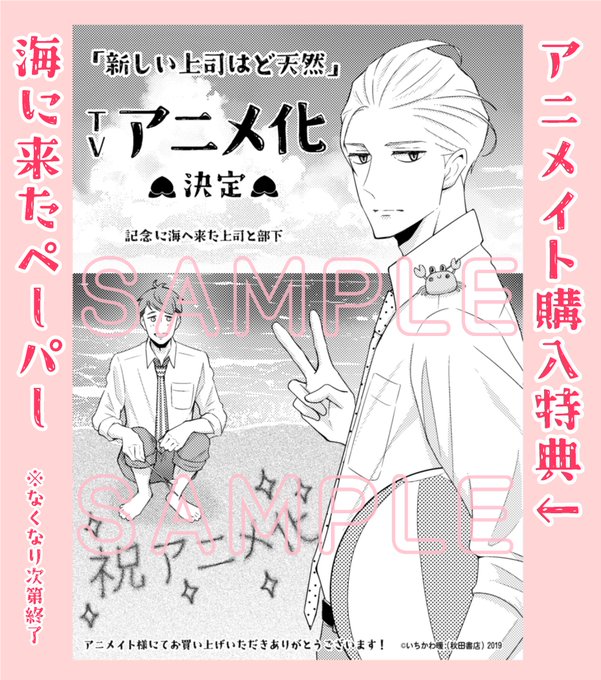 本日20時に大事なお知らせがあるので久々にツイートしようと思ったけどTwitterが見つけられなかった上司。 果たして20時に間に合うのか…答えはアニメ公式アカ(@do_tennen_anime )にて! #新しい上司はど天然