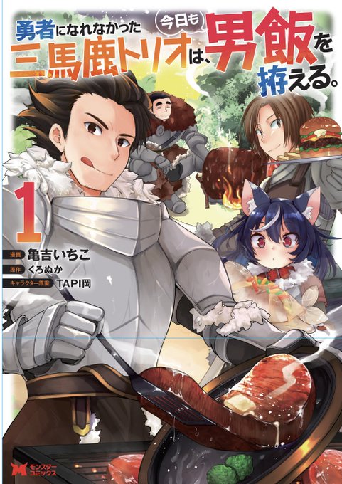 4月30日(公式)に 「勇者になれなかった三馬鹿トリオは、今日も男飯を拵える。」のコミカライズ1巻がでますので この三人と美味しい肉食べたいなーっておもったらぜひ〜! ちょっと色んな人に見てもらいたいなーとツイッターにあげさせてもらいました amazon.co.jp/dp/B09RZPQ7ZJ/…