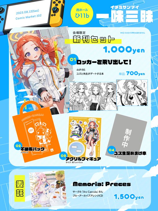#C102 お品書き&お手伝いさせて頂いたサークルさん情報です! 1日目西ひ11b「一味三昧」にてお待ちしております! 詳細→ichimi-131.fanbox.cc/posts/6415985?… 宜しくお願いしまーす!