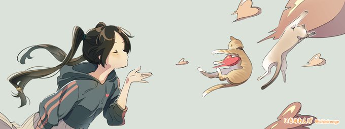 猫の日なので投げキッスでねこちゃんを吹き飛ばすヘッダーイラスト描きました😘むちゅちゅ #猫の日 #新しいヘッダー画像