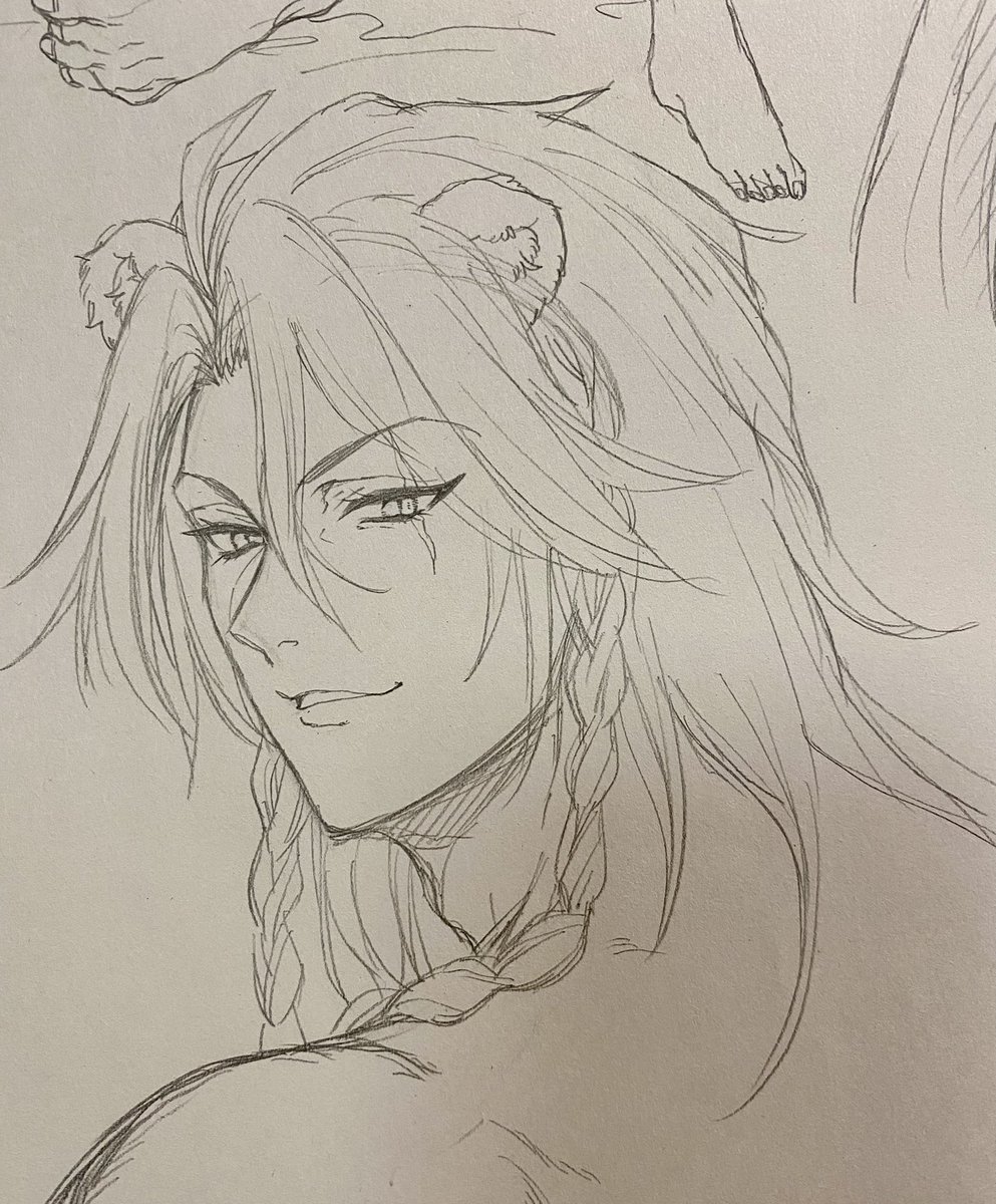 【twst:レオナ落書き(ペン試し)】 定期的にデジタルでのペン入れ用ブラシを変えたくなる病に 陥りますが…今回は知名度の高い『シミペン・改』で 🦁さんはつい練習で描いてしまう…描き込み多くて長髪だから長い線を引く感じとかも試し易いんでしょな…どこまで有能な男なん…