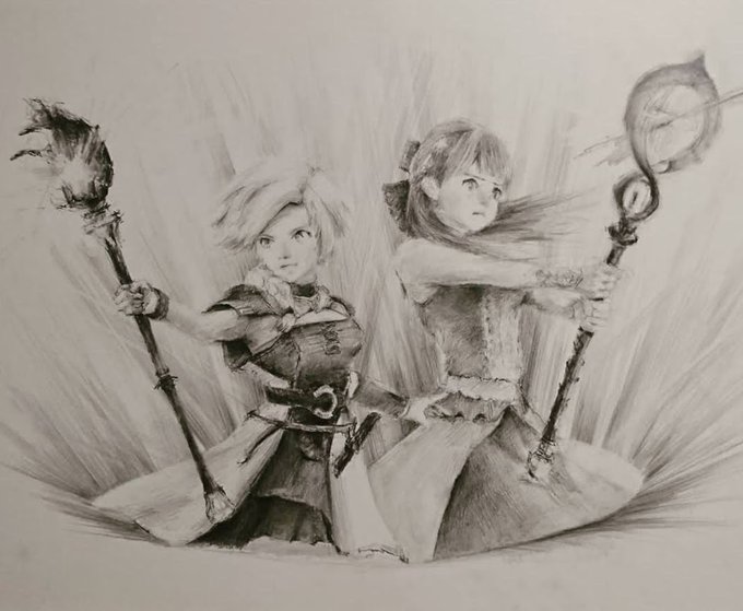 再掲。(^-^) #女の子二人のイラストを貼る見た人もやる #鉛筆画 #ドラゴンクエスト