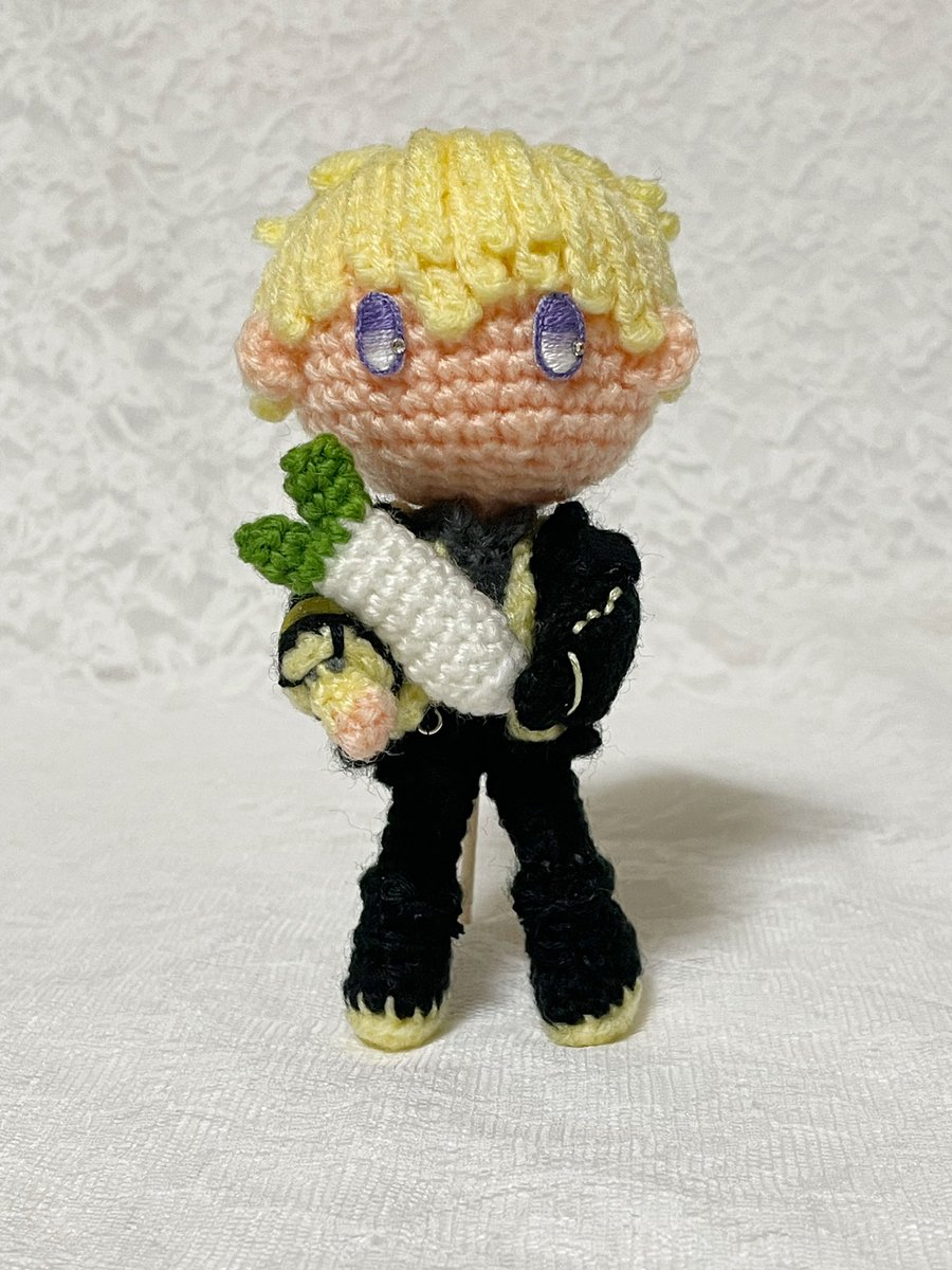「Yo! How you doing?」 遊間ユーゴさんを編みました🧶・:*+.(( °ω° ))/.:+ ※誤字があったので投稿し直してます #AsumArt #YugoAsuma #にじさんじ手芸部