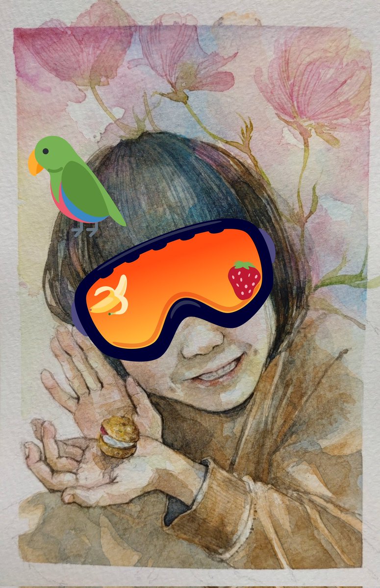 #今月描いた絵を晒そう 【その他いろいろ】 娘が持っているのは苺入りシュークリーム型の消しゴムです🍓難しそうなのでプチトマトとかにしていいか聞いたら即却下されました(笑) 私に甘い(夫には激辛流)ので300点の高評価でした。こうやってがっつりペンで書いちゃうところ含めての成長記録ですね🤭