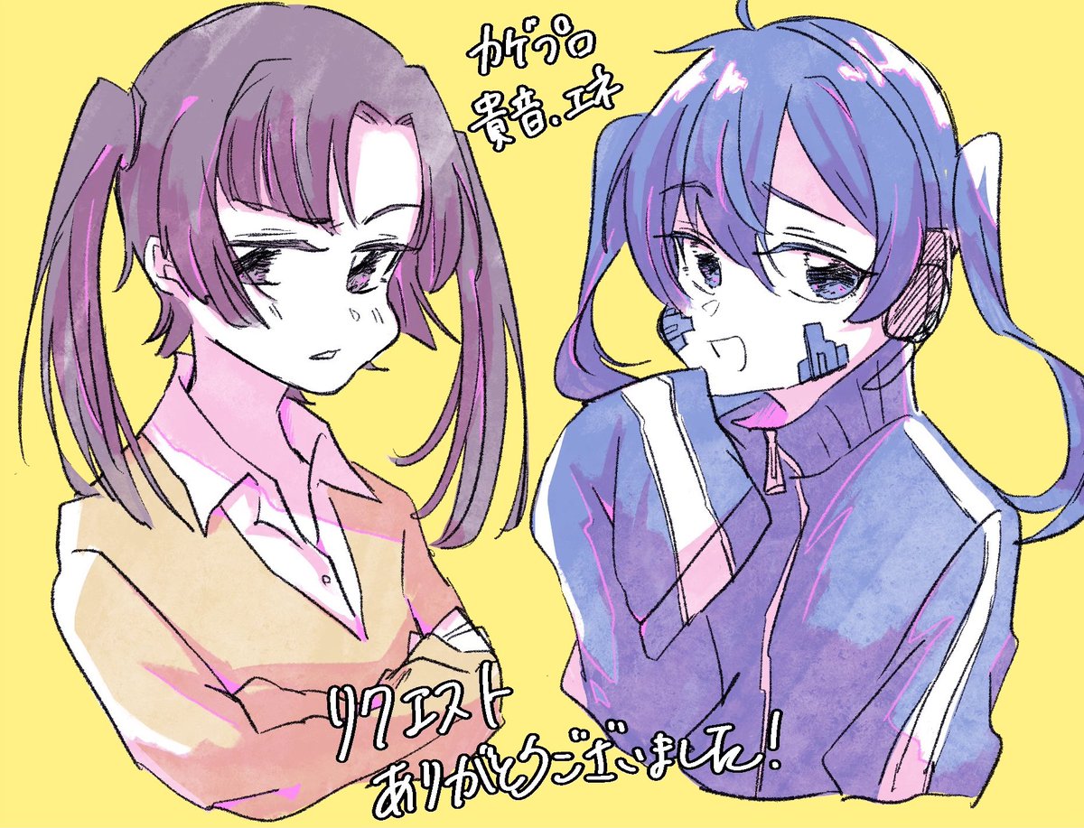 リク絵③ リクありがとうございました!!エネ貴ちゃんどちらかで、とリクを頂いた結果選べず二人描かせていただきました…☺️ツインテ楽しかった!!