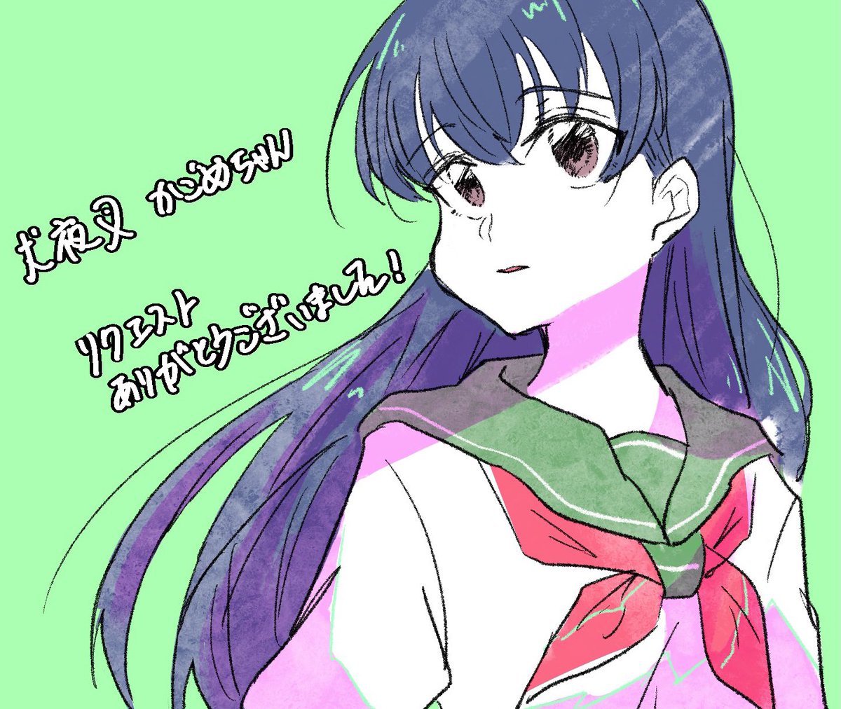 1 7 リク絵⑤ リクありがとうございました!!初描きすぎて似てなかったらすみません…泣かごめちゃん、グリーンのセーラー服がとても似合う… 21/11/13 10:25