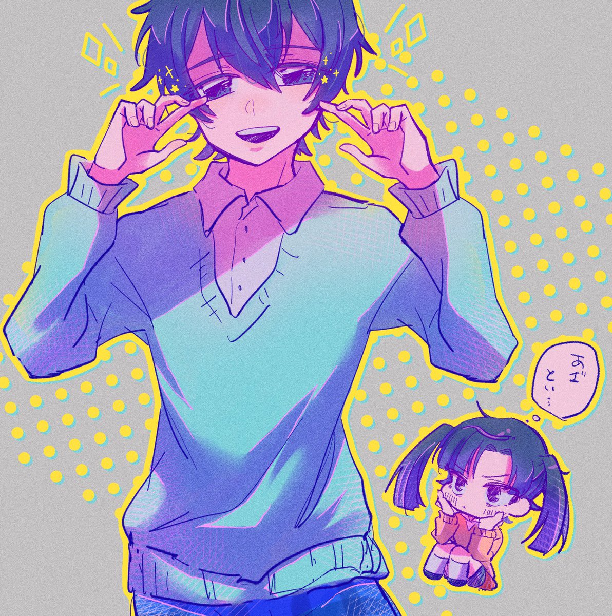 12 34 リク絵③ リクありがとうございました!!エネ貴ちゃんどちらかで、とリクを頂いた結果選べず二人描かせていただきました…☺️ツインテ楽しかった!! 21/11/02 21:00