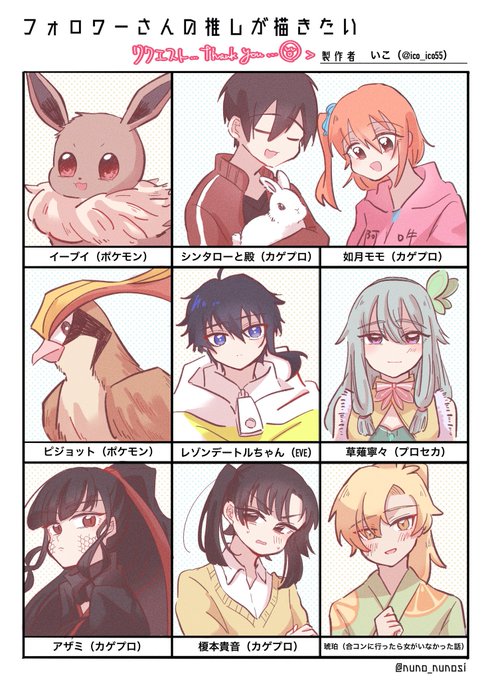 #フォロワーさんの推しが描きたい 大変お待たせしました!!一部すごくお待たせしてしまってた方がいたり、勝手に共演(?)などさせていますが色々な子を描けて楽しかったです〜〜🤟🤟