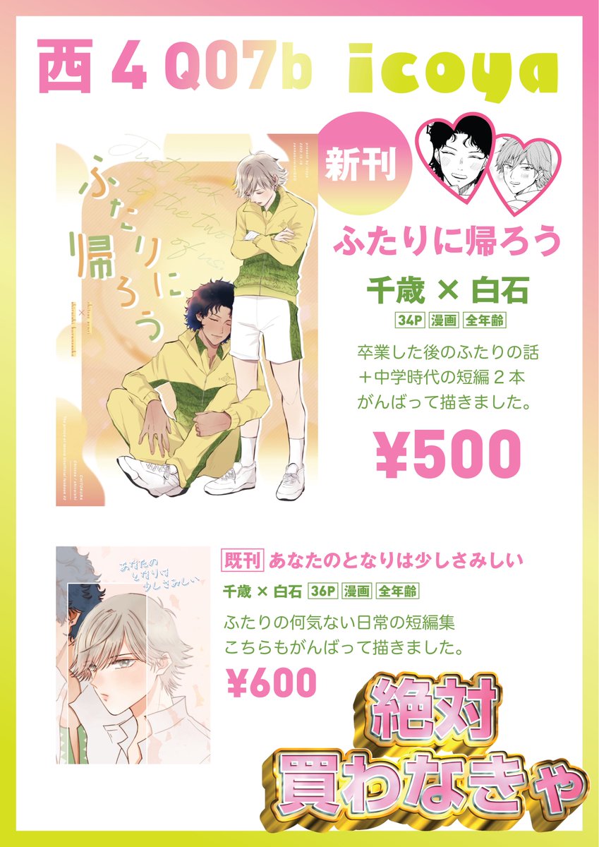 12/18 全国大会GSΩ のおしながきです〜ちとくらサークル!! 西4ホール Q07b icoyaに元気いっぱいで座ってる予定ですよろしくお願いします🙇♀️💕 pixiv.net/artworks/10358…