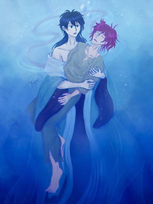 Here it is, my long awaited submission for #unleashedblue 🥺 i decided to try going with a sort of water spirit!Haru rescuing a lost seaman!Rin 👀 I always love drawing them and the water color palette is very soothing🥰 #rinharu #digitalart