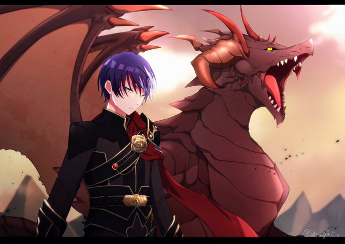 黒騎士とドラゴン🐲 ☕は架空生物にも好かれてるし、格好良すぎて描かずにはいられなかった #prsk_FA