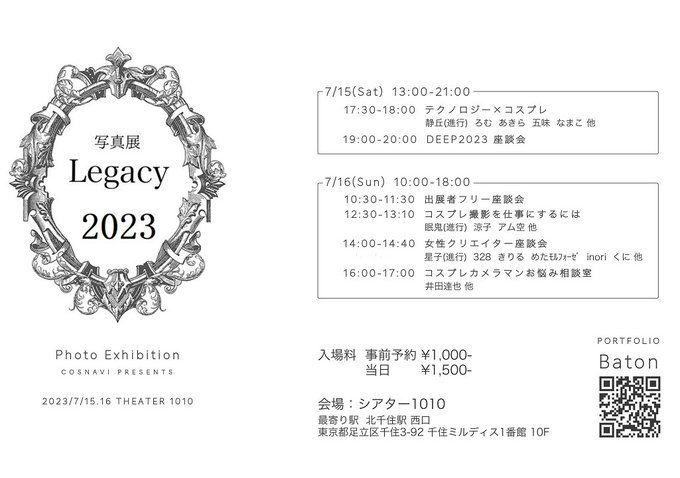 明日から写真展 #レガシー2023 が開催! 去年に引き続きけーたろさんと合同展示でB0サイズ18枚の物量でお待ちしております! 16日には講演もするので楽しんでいきましょ〜📸 cosnavi.biz/exhibition/leg…