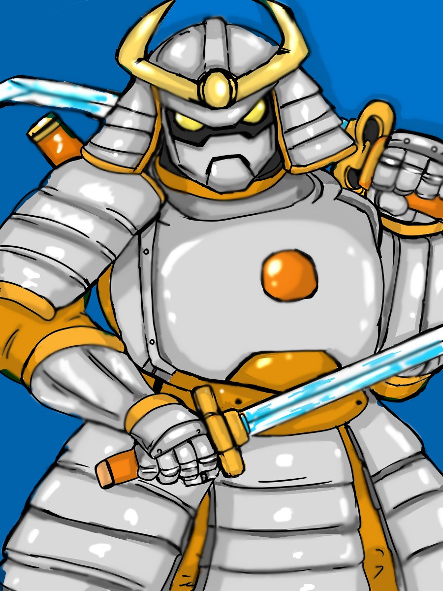 #格ゲーキャラ描こうぜ #富士山バスター #カネコ シルバ〇サムライでも、ソ〇ムでも、武者ガ〇ダム でもないです。1992年にカネコから出された アーケードゲーム「富士山バスター(ふじやま)」 キャラの名は「将軍」しかも、ロボ、英語で喋る。