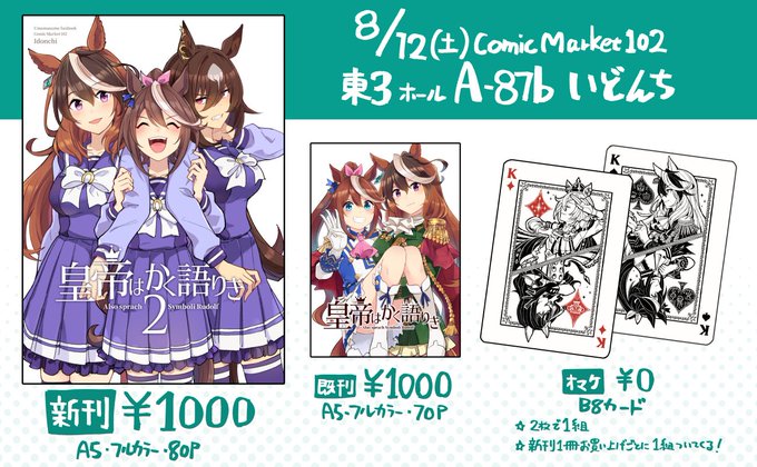 C102新刊の委託予約受付が始まりました。 WEBに上げた会長漫画のまとめ本、フルカラー72Pです。 書き下ろしはトレーナー君が出張でいなくて寂しい会長がなんやかんやする話です。 よろしくお願いします! 🍈 melonbooks.co.jp/detail/detail.… 🐯 ecs.toranoana.jp/tora/ec/item/0…