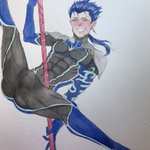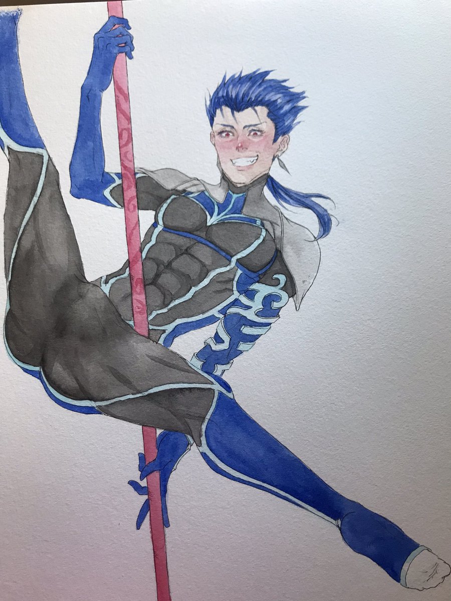 Cu Chulainn from Fate pole dancing. Please excuse him, he’s drunk and horny. xD #FGO #FateStayNight #animeart #watercolor #illustration