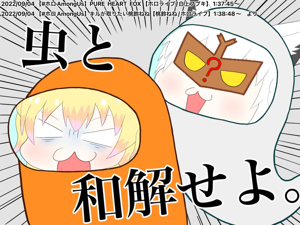 3 27 ケモ耳白髪カブトムシなぞなぞ仮面幽霊きーつねとかいう属性過多スタイル。 #絵フブキ #ねねアルバム 22/09/05 18:50