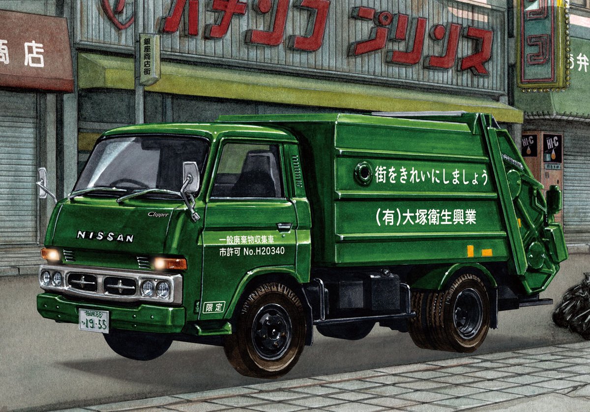 私的イラスト傑作選(268) アシェット「#懐かしの商用車コレクション」 マガジン用イラスト Vol.53ーVol.56 Vol.53 日産サニーバネットラルゴバン(クリーニング店) Vol.54 スバル サンバー(配送業仕様) Vol.55 日産ジュニア (電気通信工事業用) Vol.56 日産ダットサントラック620 (精肉店)
