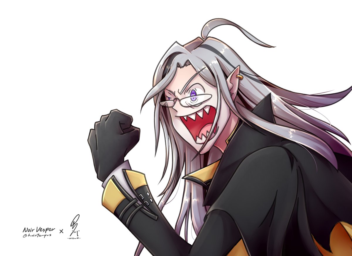 Initially I'm curious how my color style would fit on Vesper's lineart so I did (on the right-side image). And uh... bg idea went brrrrrr and added the Vesties warcry (on left-side image) lol Had fun with the lineart, thanks for letting us color it Gramps. 🫡 #ColorMeVes