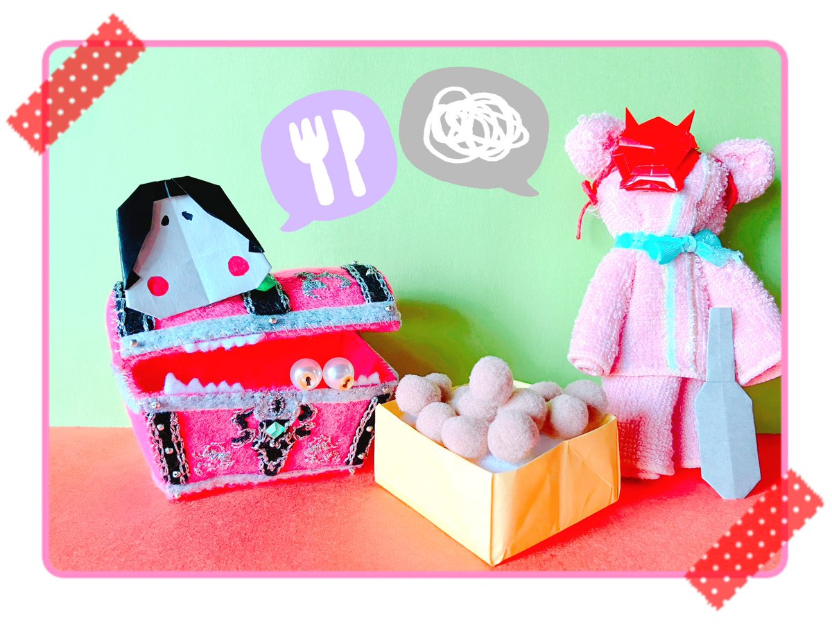 🧸🔥<なぜ私が鬼なのだ💢 👀🗝<修行中の師匠はまさに鬼でしたよ 🧸🔥<だとしても、豆を投げられ追い払われるのは納得がいかん! 👀🗝<(鬼だった自覚はあるんだ) 🧸🔥<視界は悪いがこれならば良し! 👀🗝<(お豆ウマウマ) 一足早く節分師弟 歳の数だけ?多い多いw #みみっくアート