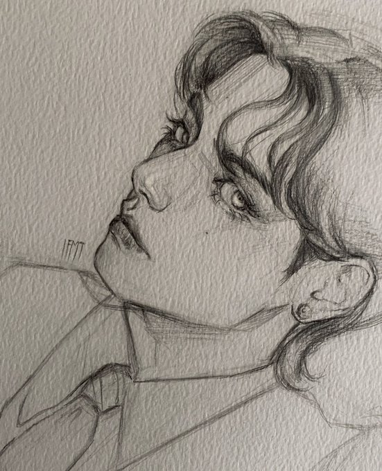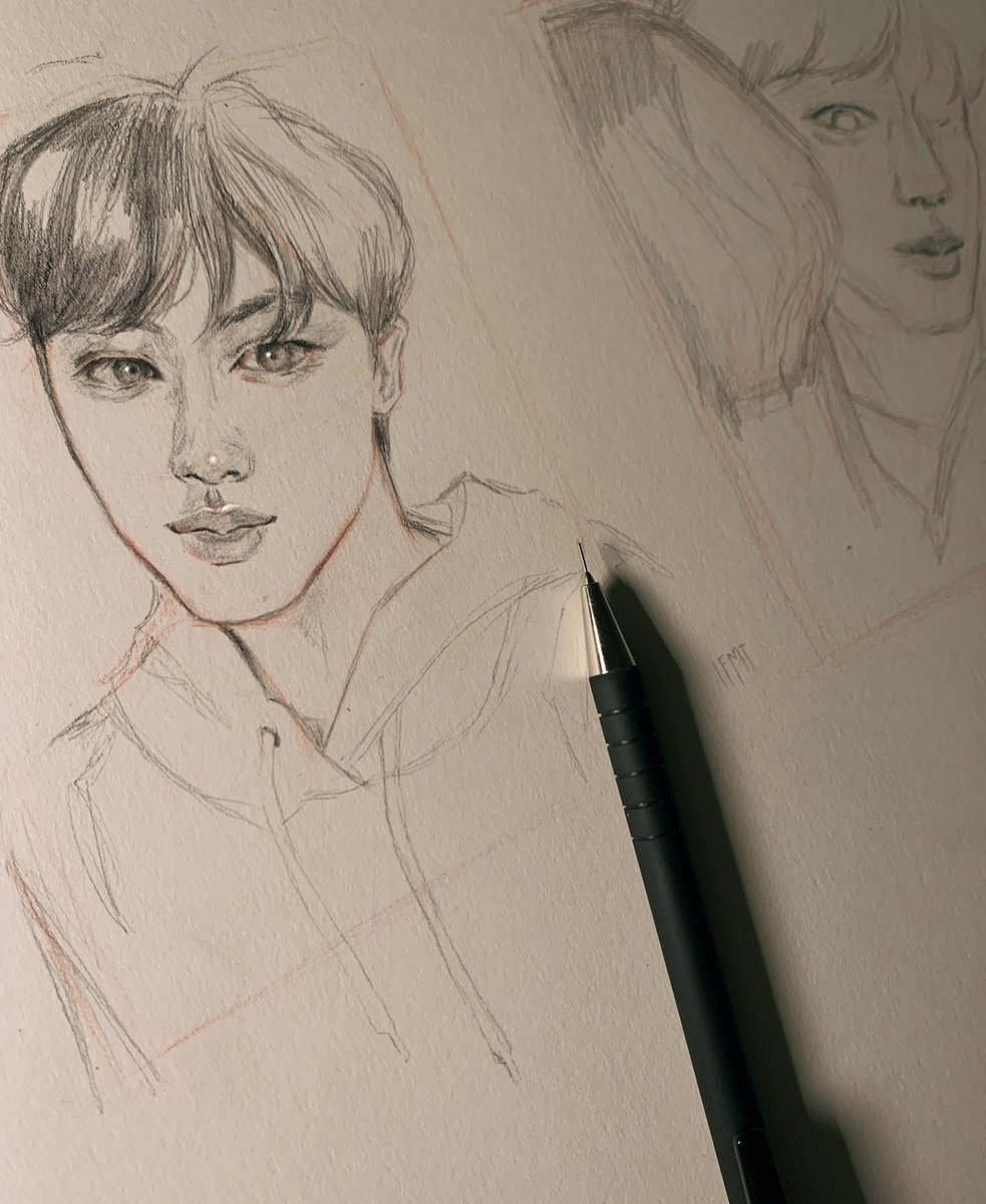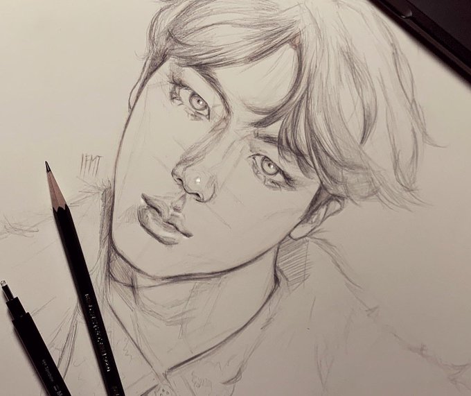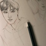 Jk looks so cute here:(, a sketch for an upcoming collab #Jungkook #BTS