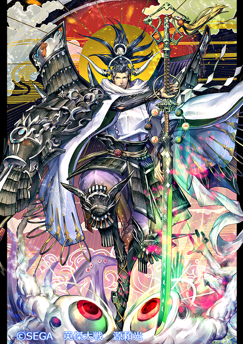 本日、8/9に大型バージョンアップされました 『英傑大戦』にて、「源頼光」(CV:#松本保典 様) イラスト担当させていただきました。 四天王も同時実装っていいですね。 どうぞ宜しくお願い致します! #英傑大戦