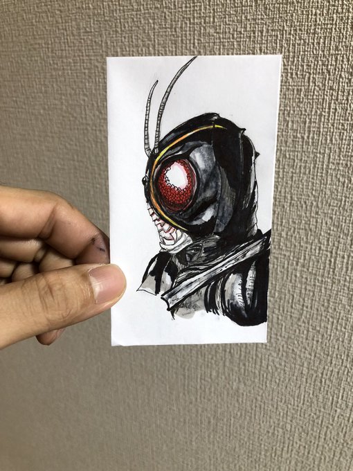模写だけじゃつまらないので複眼を赤くしてみた! 楽しかったー! #仮面ライダーBLACKSUN #イラスト