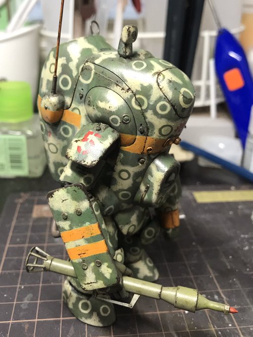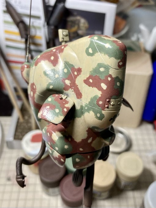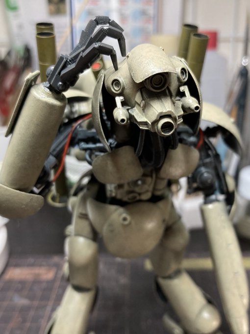 1/20 グローサーフントAusf.K 「キュクロープ」 雨続きだったので、戦車の塗装は休憩してこちらをいじってました。 ちなみに「えへへ」っていう感情を表現しております。笑 #ハセガワプラコン #マシーネン #マシーネンクリーガー