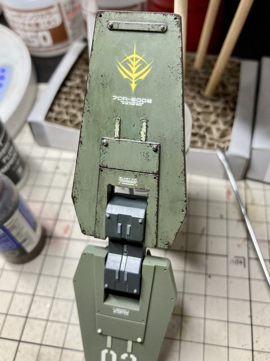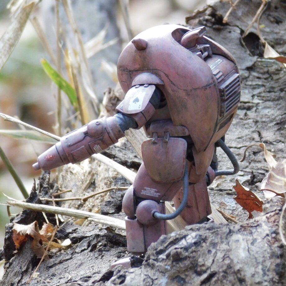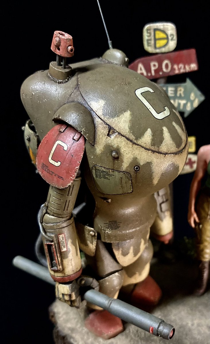 ラプター組みました! ・ハッチを平たいタイプに ・背中のディテールを見せるためにシールドを横にずらす ・根性棒っぽい武器を戦車の砲塔で作成 ・女性パイロットなので、右手の小指を立て気味に ・背中にそれっぽい荷物を積みました #マシーネン #paintonplasticMaKcomp2022