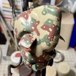 基本塗装とデカール完了しました。 迷彩は勢いで、最終的に骨っぽい?牙っぽい?感じになりました。 指の骨ホネ塗装いい感じにできました。 このあと汚していきます! #マシーネン #paintonplasticMaKcomp2022