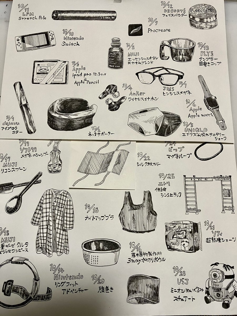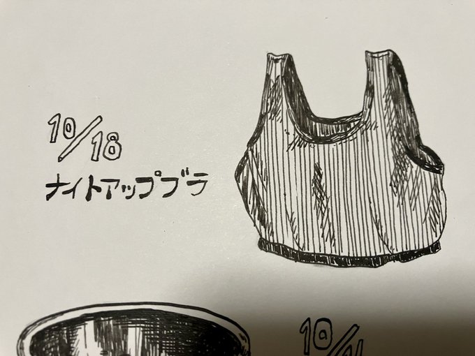 インクトーバー18&19日目 ナイトブラは締め付けキツくないのにガッチリ固定してくれる良い奴 冬場はお腹の防御力ゼロなのがややマイナス メガネのシャンプーはシュッシュするだけでレンズがピカピカになるので最高 #inktober #inktober2022