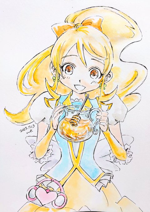 2 7 #イラスト 茶琴さん@tyagoto_hashi8 からのリクエストで描かせて頂きました。 ハピネスチャージプリキュア!のキュアハニー 分かりにくいですが手に持ってるのは蜂蜜です。 23/07/13 23:44