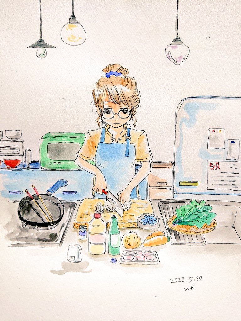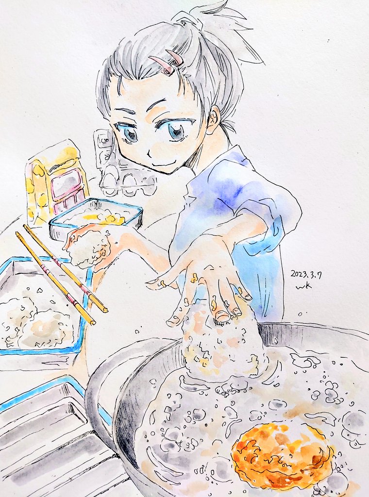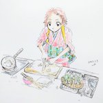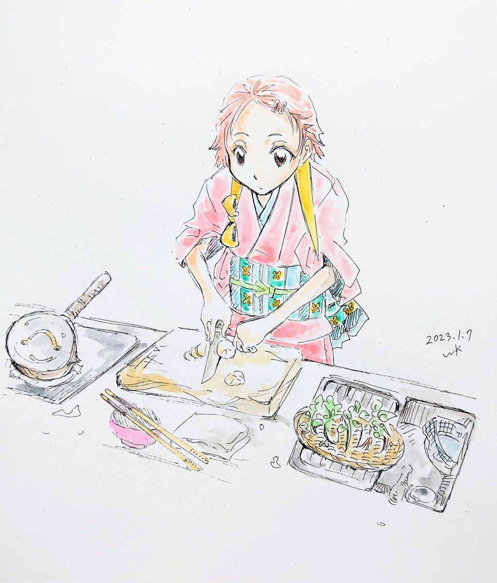 1 2 料理シリーズ メンチカツ、七草粥、ケーキ作り、鶏肉のクリーム煮込 #水彩画 23/03/08 00:06