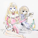 #イラスト グリモア 李小蓮&水無月風子 同じ誕生日を祝って (設定としては戦闘後に朝陽を見てる感じ)