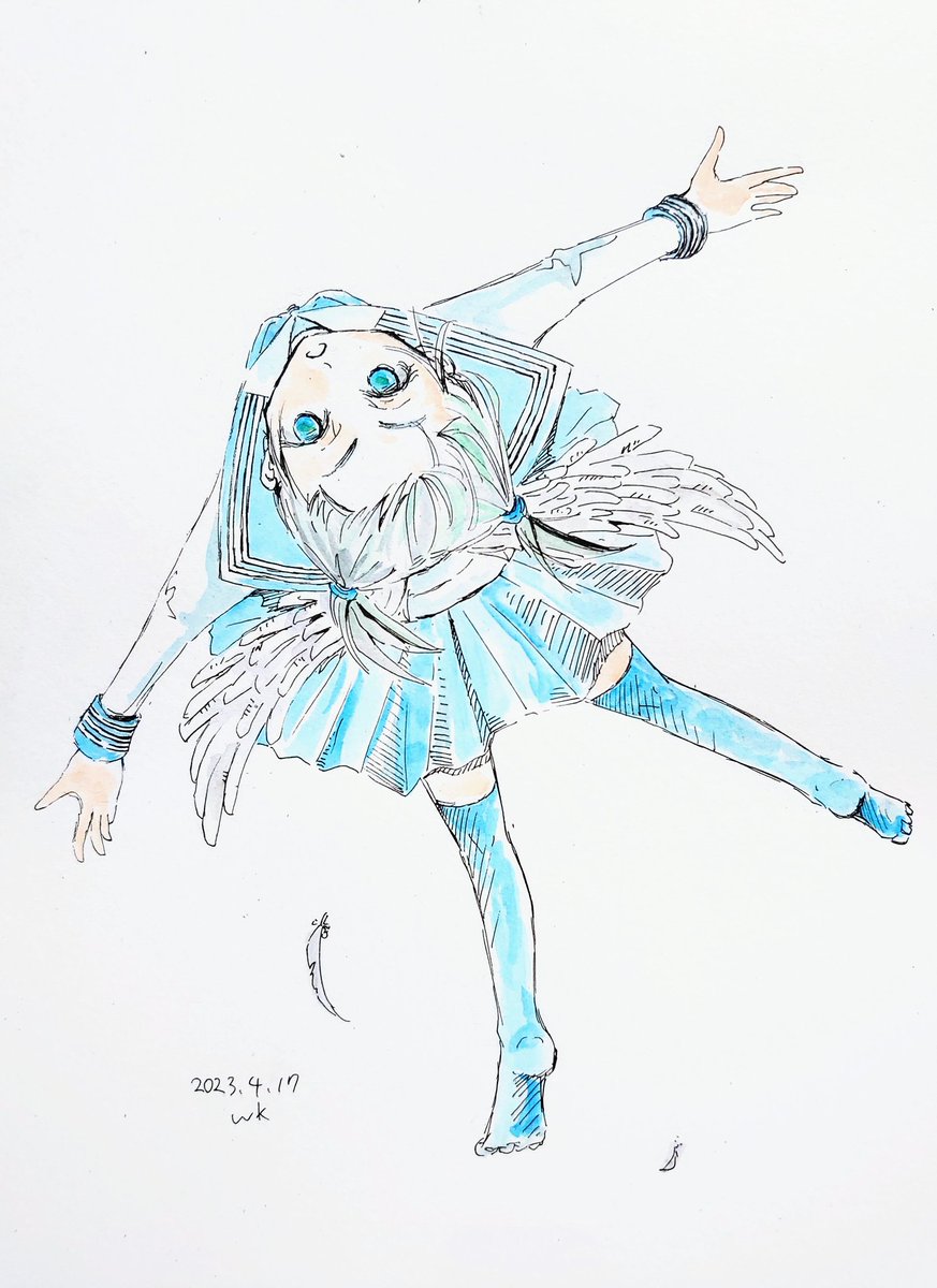 1 1 #あなたのみず色の作品を見せてください 羽の少女、お届けもの、宙兎、雨童子 23/04/20 07:38